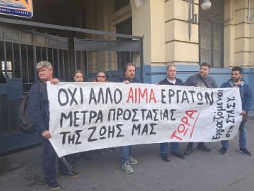 Αμεση ήταν η απάντηση των εργαζομένων της ΣΤΑΣΥ, που αποφάσισαν επιτόπου στάση εργασίας 12 μ. - 6 μ.μ. ενώ οργάνωσαν και συγκέντρωση έξω από τον ΗΣΑΠ στον Πειραιά. Με πανό που έγραφε «Οχι άλλο αίμα εργατών - Τώρα μέτρα προστασίας της ζωής μας» και σύνθημα «Κέρδη βουτηγμένα τον εργατών το αίμα» δήλωσαν πως δεν θα δεχτούν κανένας άλλος συνάδελφός τους να μη γυρίσει σπίτι, κανένας άλλος να μην σακατευτεί για να αυγατίζουν τα κέρδη τους οι μονοπωλιακοί όμιλοι.