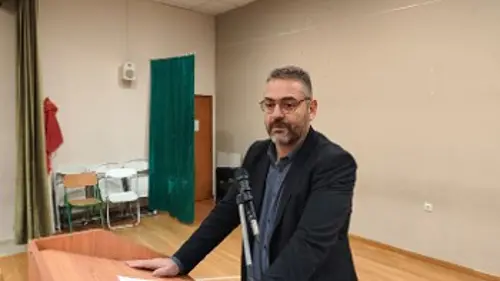 Μιλώντας στην εκδήλωση ο Γιάννης Πρωτούλης, μέλος του ΠΓ της ΚΕ του ΚΚΕ, αναφέρθηκε στους σκληρούς αγώνες των μεταλλωρύχων και στη συμβολή του ΚΚΕ.