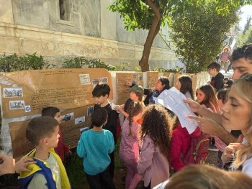 Η φετινή δράση του «κόκκινου Αερόστατου» ήρθε ως συνέχεια των περσινών μας ξεναγήσεων στην Εκθεση για «Το απελευθερωτικό - επαναστατικό 1944», στην οποία είχαν πάρει μέρος εκατοντάδες παιδιά, αποκτώντας μια εμπειρία που φάνηκε ότι έχει αφήσει παρακαταθήκη. Φέτος, μέσα από την αφήγηση «Ο μεγάλος περίπατος του Πέτρου» τα παιδιά είχαν την ευκαιρία να μάθουν πώς πραγματικά ζούσε ο λαός της Αθήνας στα χρόνια του πολέμου. Τι σημαίνει κατοχή, λιμοκτονία, η απειλή του όπλου σε όποιον αντιδρούσε. Και όλα αυτά μέσα από τα μάτια ενός πρωταγωνιστή στην ηλικία τους. Σταθήκαμε στα ουσιώδη ερωτήματα της Ιστορίας. Ποια ήταν τα πραγματικά αίτια του πολέμου; Ποιος είπε το «ΟΧΙ» στους Ιταλούς (και πώς το τήρησε στην πράξη); Πώς το ΚΚΕ αποτέλεσε τον καθοριστικό παράγοντα για την οργάνωση της Αντίστασης; Πώς το ΕΑΜ έσωσε τον λαό από την πείνα; «Θα κλέβατε τρόφιμα από τους Γερμανούς;», «Θα γράφατε συνθήματα μέσα στο βράδυ;» Το «ναι» που έβγαινε από τα χείλη των παιδιών δεν ήταν επιπόλαιο και ενθουσιώδες. Εδειχναν να αντιλαμβάνονται τους κινδύνους της αποστολής που αναλάμβαναν εκείνα τα παιδιά, όπως και το πόσο σημαντικό ήταν για τον αγώνα ενάντια στον κατακτητή. Μιλώντας για τα κλειστά σχολεία, ρωτούσαμε: «Θα σας άρεσε να μην είχατε σχολείο για δύο χρόνια;» Πρώτα χαμόγελα, μετά προβληματισμός, μετά θλίψη. «Ε... όχι» απαντούσαν «δύο χρόνια είναι πολλά». Μερικά απορούσαν: «Γιατί έγραφαν Στάλινγκραντ στους τοίχους;», δίνοντάς μας την ευκαιρία να μιλήσουμε για την εποποιία του Κόκκινου Στρατού, για την παγκόσμια μάχη να νικηθεί το τέρας του ναζισμού. Και τελικά φτάναμε σε τελείως αχαρτογράφητα νερά: Στην απελευθέρωση της Αθήνας. Πότε έγινε; Από ποιον απελευθερώθηκε; Γιατί γιορτάζουμε την έναρξη του πολέμου και όχι την απελευθέρωση;
