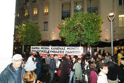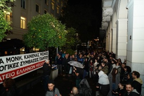 Αψηφώντας την κακοκαιρία, πολλοί ηθοποιοί, άλλοι καλλιτέχνες αλλά και σπουδαστές των καλλιτεχνικών σχολών έδωσαν το «παρών» στη δυναμική απεργιακή συγκέντρωση που διοργάνωσε το Σωματείο Ελλήνων Ηθοποιών το απόγευμα της Παρασκευής έξω από το «Παλλάς».