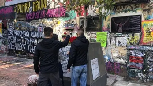 Λουλούδια στο σημείο δολοφονίας του Αλ. Γρηγορόπουλου