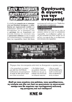 - Την απεμπλοκή της χώρας μας από τους ΝΑΤΟικούς σχεδιασμούς, που μετατρέπουν τη χώρα σε θύτη εναντίον άλλων λαών και στόχο αντιποίνων.