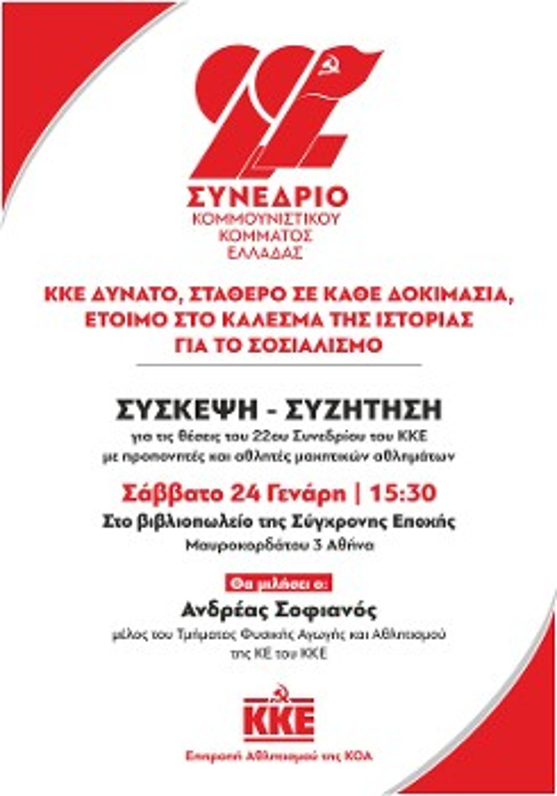 Εκδήλωση - συζήτηση μπροστά στο 22ο Συνέδριο του ΚΚΕ διοργανώνει η