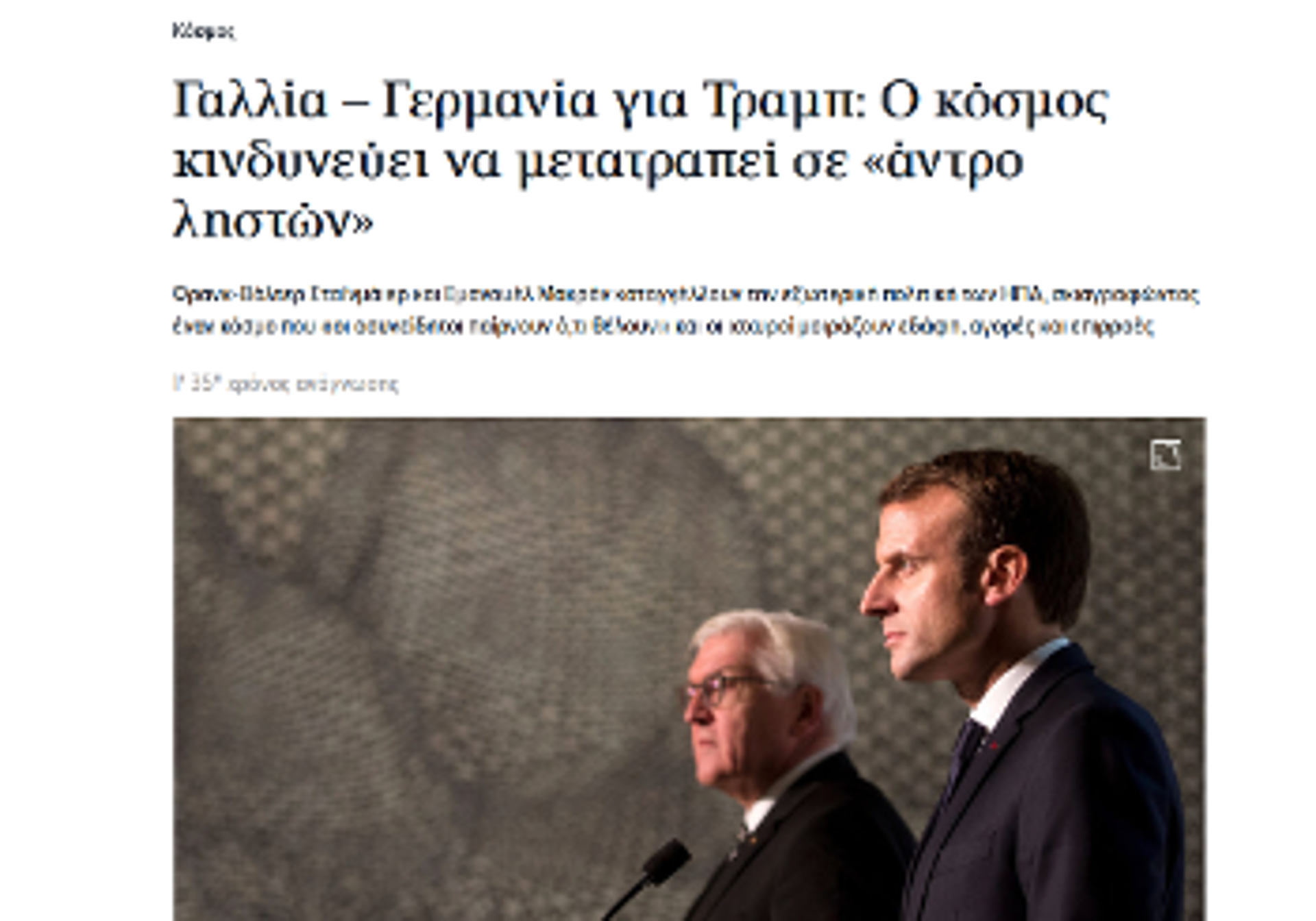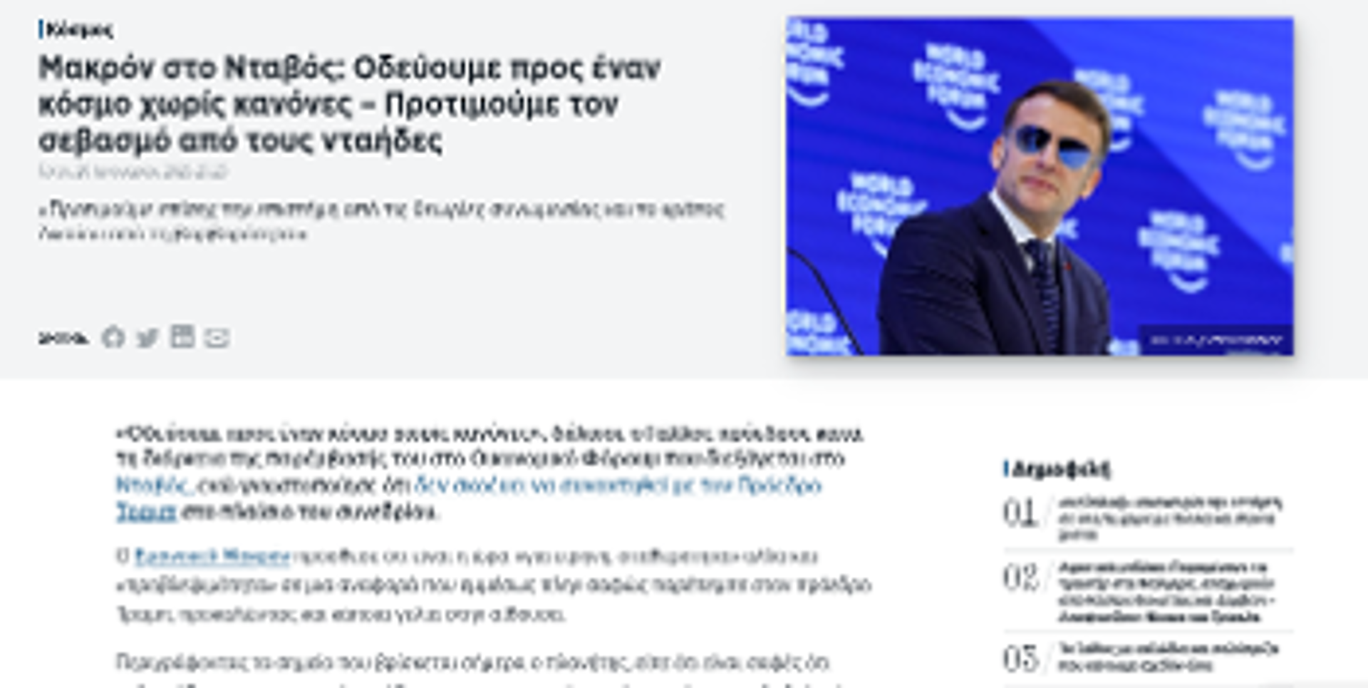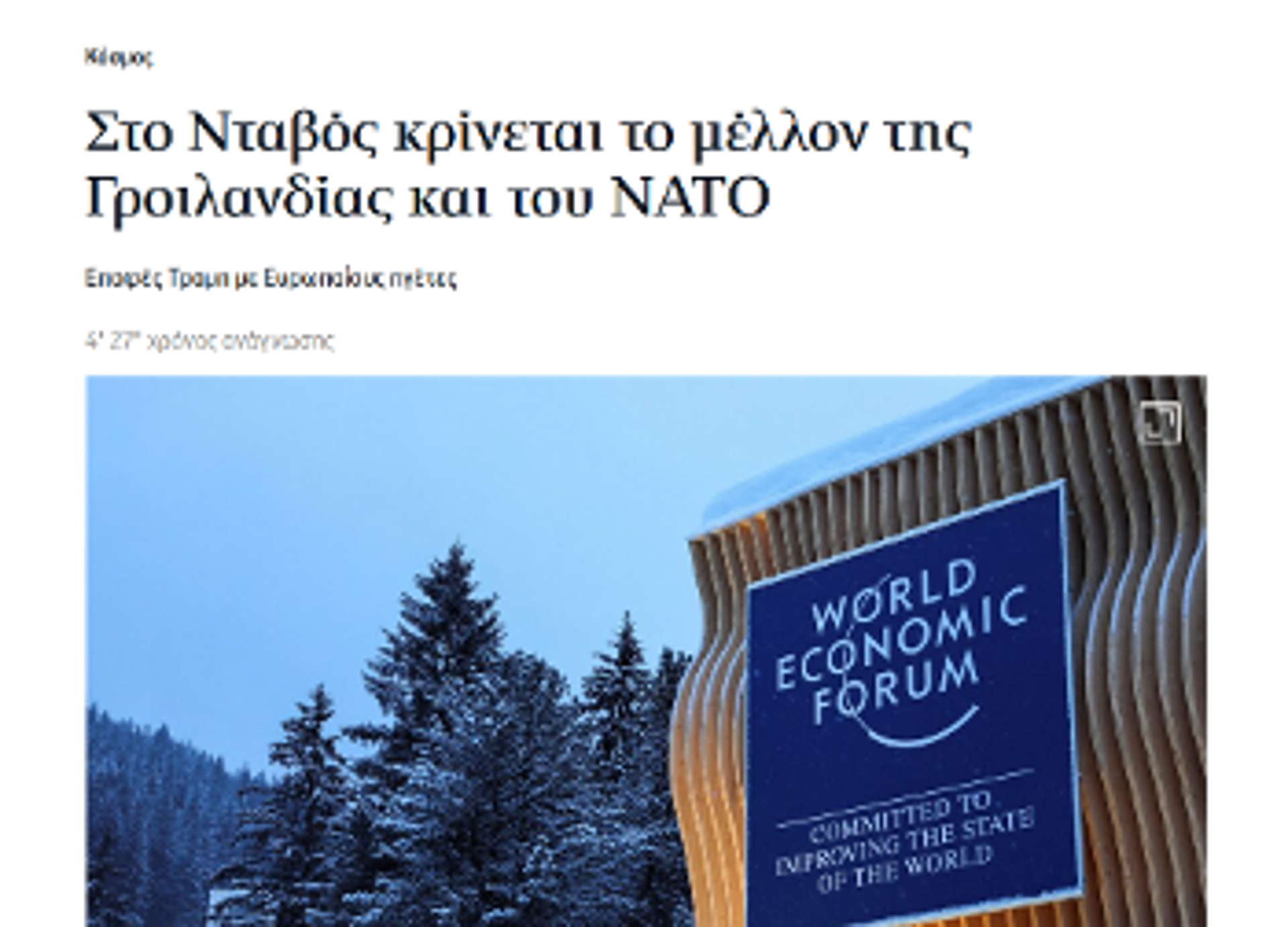 ΝΑΤΟ τέλος αν συνεχίσει έτσι», «Στο Νταβός κρίνεται το μέλλον του ΝΑΤΟ», «Μακρόν από το Νταβός: Οδεύουμε προς έναν κόσμο χωρίς κανόνες», «Ξαφνική αποχώρηση Λαγκάρντ από την ομιλία Λούτνικ μετά την κριτική του στην Ευρώπη», «Φρ. Μερτς: Η διεθνής τάξη των τελευταίων τριών δεκαετιών (...) έχει κλονιστεί στα θεμέλιά της». Δεν είναι σενάρια επιστημονικής φαντασίας, αλλά μερικοί από τους τίτλους των αστικών Μέσων που περιγράφουν την «καθημερινότητα» των ανταγωνισμών ανάμεσα σε «συμμάχους και φίλους».