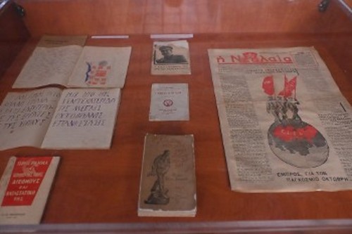 Αντικείμενα που κουβαλούν πάνω τους την Ιστορία, τον ιδρώτα, το αίμα, τη θυσία. Και όχι μεταφορικά, αλλά κυριολεκτικά, αφού σε κάποια από τα σπάνια ντοκουμέντα που εκτίθενται στον χώρο τα ίχνη από αίμα μαρτυρούν όχι μόνο τη δική τους ιστορία, αλλά την Ιστορία ολόκληρου του Κόμματος, που έπρεπε να σταθεί όρθιο περνώντας μέσα από φωτιά και σίδερο.