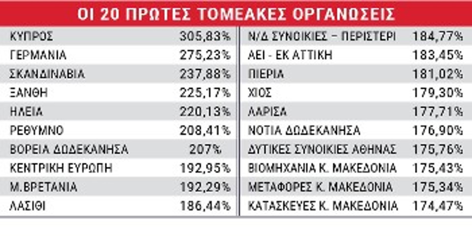 Σημειώνεται πως η παραπάνω προσωρινή κατάταξη των Οργανώσεων Περιοχής αφορά το κριτήριο κάλυψης των πλάνων, ενώ η τελική θα προκύψει μετά και την ενσωμάτωση των ποιοτικών δεικτών της Οικονομικής Εξόρμησης.
