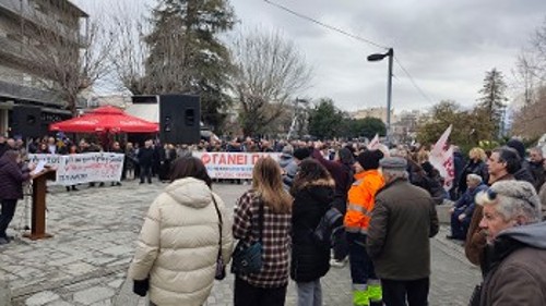 Εκατοντάδες εργαζόμενοι και ο λαός της πόλης, με μαζική συμμετοχή στην απεργιακή συγκέντρωση στην πλατεία Ρήγα Φεραίου, μετέτρεψαν τον θρήνο και τον θυμό σε απόφαση ανυποχώρητου αγώνα, διατρανώνοντας την απαίτηση να σταματήσει να χύνεται ατελείωτο αίμα εργατών για τα κέρδη της μεγαλοεργοδοσίας.