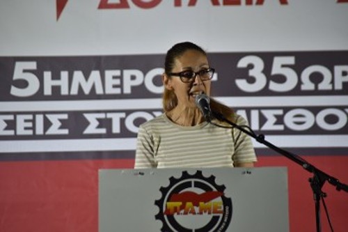 Αντιγόνη Μαυρομμάτη, γενική γραμματέας του Συνδικάτου Επισιτισμού - Τουρισμού - Ξενοδοχείων ν. Αττικής, πρόεδρος του Σωματείου στο ξενοδοχείο «Saint George Lycabettus»