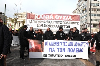 «Είμαστε εδώ γιατί λερώνουμε τα χέρια μας από τον κόπο μας και μόνο», ξεκαθαρίζει και αναδεικνύει ότι στο λιμάνι όπου δραστηριοποιείται το κινεζικό μονοπώλιο της COSCO μεταφέρεται πολεμικός και στρατιωτικός εξοπλισμός, «έχουν ανοίξει νταλαβέρια να μεταφέρονται όπλα και να γίνεται το λιμάνι χώρος υποδοχής για ΝΑΤΟικά πολεμικά πλοία. Εμείς, ο λαός του Πειραιά, οι εργαζόμενοι, το εργατικό - λαϊκό κίνημα, διατρανώνουμε για άλλη μια φορά ότι αυτοί είναι ανεπιθύμητοι. Να πάνε στα τσακίδια και στον αγύριστο!», τονίζει.