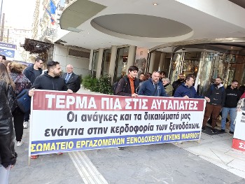 Ο Διαμαντής Δημητρακόπουλος, πρόεδρος του Σωματείου Εργαζομένων Ξενοδοχείου «Intercontinental», σημείωσε ότι η μάχη που δίνεται είναι «για τη ζωή μας», απέναντι στην πολιτική «που σαρώνει ό,τι έχει απομείνει από κοινωνικές παροχές στο πλαίσιο της πολεμικής προετοιμασίας και της ενεργής συμμετοχής της χώρας μας στους πολεμικούς σχεδιασμούς και τις επεμβάσεις. Σήμερα οι εργαζόμενοι στα ξενοδοχεία, στην εστίαση, οι καμαριέρες, οι μάγειρες, οι σερβιτόροι, όλοι εμείς που χτίζουμε το "τουριστικό θαύμα" τους, νεκρώσαμε χώρους δουλειάς και πόστα, παλεύουμε για υπογραφή ΣΣΕ με κατοχύρωση δικαιωμάτων, για αυξήσεις στους μισθούς μας».