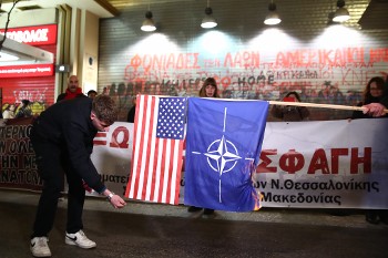 (...) Εχουμε σπουδαία κληρονομιά στα χέρια μας! Από τη Γιουγκοσλαβία το 1999, όταν οι εργαζόμενοι της Θεσσαλονίκης έφραζαν με τα σώματά τους τον δρόμο στους μακελάρηδες, μέχρι τα αντιιμπεριαλιστικά συλλαλητήρια ενάντια στον πόλεμο στο Αφγανιστάν, από τις μεγάλες πορείες ενάντια στο μακελειό στο Ιράκ και τη Συρία μέχρι τους αγωνιστές συνδικαλιστές που πριν 4 χρόνια έβαψαν με συνθήματα τα ΝΑΤΟικά οχήματα, ο λαός μας ξέρει!».