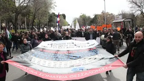 Η απαίτηση του εργαζόμενου λαού και της νεολαίας της Θεσσαλονίκης για απεμπλοκή της Ελλάδας από τον πόλεμο, να κλείσει το ΝΑΤΟικό Στρατηγείο που εδρεύει στο Γ' Σώμα Στρατού και να σταματήσουν οι υποδομές της πόλης να χρησιμοποιούνται από τις αμερικανοΝΑΤΟικές δυνάμεις, εκφράστηκε στο μεγάλο και μαχητικό συλλαλητήριο των εργατικών σωματείων και της ΕΔΥΕΘ που πραγματοποιήθηκε το πρωί του Σαββάτου και σάλπισε συναγερμό και λαϊκό ξεσηκωμό.