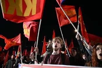 Με την αστείρευτη δύναμη του εργατικού - λαϊκού κινήματος εδώ στη χώρα μας με μπροστάρη το ΚΚΕ και πάνω από όλα με εφόδιο το επαναστατικό του Πρόγραμμα, αποδεικνύεται η δυνατότητα ο ίδιος ο λαός να γίνει κύριος του πλούτου που παράγει ανατρέποντας την καπιταλιστική βαρβαρότητα, σε έναν αγώνα για τη δική του εξουσία και την αποδέσμευση από κάθε λυκοσυμμαχία.
