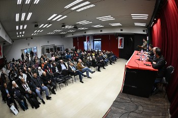 Η ομιλία του Μάρκου Μπεκρή, μέλους της Γραμματείας του ΠΑΜΕ, προέδρου του ΕΚ Πειραιά και της ΕΝΕΔΕΠ, στη διεθνιστική εκδήλωση
