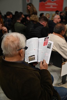 Το «παρών» στην εκδήλωση έδωσε πλήθος κόσμου που έχει συναντηθεί με το ΚΚΕ το προηγούμενο διάστημα στους αγώνες του λαού μας ενάντια στον ιμπεριαλιστικό πόλεμο, στην εμπλοκή της χώρας, στον καθημερινό αγώνα για να μην πληρώσει ο λαός τα βάρη και τις συνέπειες των πολέμων τους. Που έδωσε μαζί με τους κομμουνιστές μάχες σε κάθε χώρο δουλειάς και κλάδο, για να ακουστεί δυνατά: «Εξω η Ελλάδα από τον πόλεμο, δεν θα πληρώσουμε εμείς τα σπασμένα». Που συμπορεύτηκε με τους κομμουνιστές και τις κομμουνίστριες μέσα σε κάθε σωματείο και φορέα του εργατικού - λαϊκού κινήματος, για να οργανωθούν η πάλη και η υπεράσπιση των δικαιωμάτων και των συμφερόντων του λαού μας και όχι των εκμεταλλευτών, που σήμερα τα βαφτίζουν «εθνικά συμφέροντα».