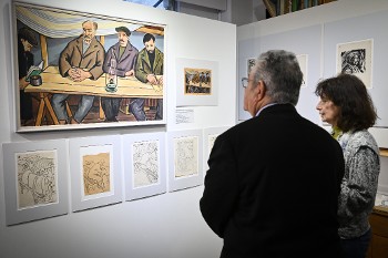 Μετά την περιήγηση - ζωντανή αναδρομή στην ηρωική Ιστορία του ελληνικού λαού και του Κόμματος (Κατοχή, Αντίσταση και Εξορία) μέσα από τα σκίτσα, τα σχέδια, τη ζωγραφική και άλλα πολύτιμα αρχεία και την ξενάγηση στον Χώρο, ο Δημήτρης Κουτσούμπας συζήτησε με την κόρη του «παντοτινά δικού μας» Γιάννη, την Φωτεινή Στεφανίδη.