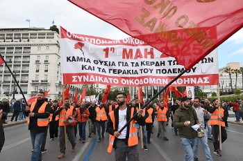 Συνεχίζουμε με την απεργία της Πρωτομαγιάς τον αγώνα ενάντια στην ΕΕ, στο ΝΑΤΟ, στους επιχειρηματικούς ομίλους, στην κυβέρνηση της ΝΔ και στα κόμματα του ευρωατλαντισμού, που επιτίθενται ανοιχτά στα δικαιώματά μας, επιβάλλοντας 13ωρα, «διευθέτηση» του χρόνου εργασίας, ελαστικά ωράρια και εντατικοποίηση στο πλαίσιο της πολεμικής οικονομίας.