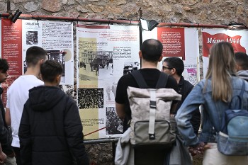 Το ενδιαφέρον μαγνήτισε και η έκθεση έξω από τον χώρο του Μνημείου με τίτλο: «Από το Σικάγο στην Καισαριανή... Μέχρι σήμερα... Συνεχίζουμε... για έναν κόσμο δίχως πολέμους και εκμετάλλευση, τον Σοσιαλισμό». Με βάση υλικό του Ιστορικού Αρχείου του ΚΚΕ στα ταμπλό της έκθεσης ξεδιπλώνονταν το κόκκινο νήμα με αρχή την 1η Μάη του 1886 στο Σικάγο και την καθιέρωση της ημέρας της παγκόσμιας εργατικής τάξης. Στη συνέχεια, περιγράφονταν τα πρώτα σκιρτήματα των εργατικών αγώνων στην Ελλάδα, η τομή με την ίδρυση του ΣΕΚΕ που μετονομάστηκε σε ΚΚΕ.