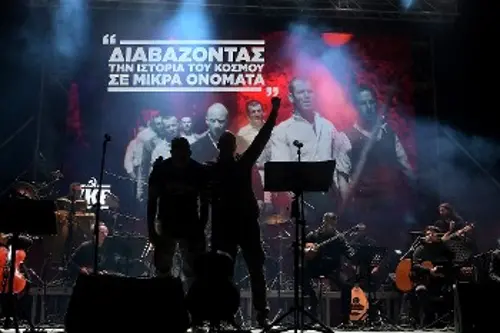 Ο Γιώργος Νταλάρας κάλεσε μάλιστα τον ΓΓ της ΚΕ του ΚΚΕ, Δημήτρη Κουτσούμπα, να σμίξει με τους καλλιτέχνες για την ολοκλήρωση του προγράμματος της συναυλίας, δίνοντάς του μικρόφωνο για το «Ενα το χελιδόνι» και τη «Ρωμιοσύνη». «Στη μνήμη αυτών των ηρώων...», όπως είπε ο Γιώργος Νταλάρας κλείνοντας τη συναυλία.