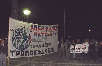 Οι διαδηλωτές βροντοφώναξαν: ΟΧΙ στο σχεδιαζόμενο βρώμικο πόλεμο κατά του Ιράκ. ΟΧΙ στην εμπλοκή της Ελλάδας με οποιαδήποτε μορφή στον πόλεμο. ΟΧΙ στο φονικό εμπάργκο κατά του ιρακινού λαού. Λευτεριά στον παλαιστινιακό λαό. Ανεξάρτητο παλαιστινιακό κράτος με πρωτεύουσα την Ανατ. Ιερουσαλήμ.