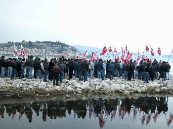 «Δράση: Θεσσαλονίκη 2003», το μήνυμα κι από κάτω μια στιβαρή γροθιά και το περίγραμμα του Λευκού Πύργου, «σήμα κατατεθέν» όλα μαζί ενός κινήματος που έχει βάλει πλώρη να μην αφήσει σε χλωρό κλαρί τους Ευρω-επιτροπάριους, όπου κι αν συνεδριάζουν.