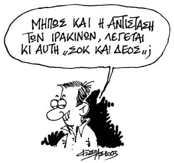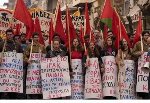 Οι υποκριτές και οι φιλειρηνιστές του γλυκού νερού, τούτες τις μέρες εύχονται να τελειώσει όσο γίνεται πιο γρήγορα ο πόλεμος, να σταματήσει, για να μην έχουν προβλήματα τα χρηματιστήρια, για να συνεχιστεί το αντιλαϊκό έργο εναντίον των κοινωνικών κατακτήσεων των εργαζομένων, να συνεχίσουν τις δουλιές τους με τις πολυεθνικές, να ανασυγκροτήσουν το Ιράκ.