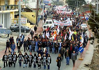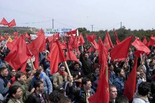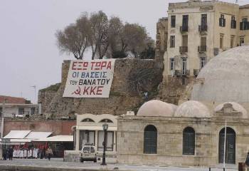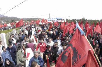 Οι κομμουνιστές «πιστεύουμε στη δύναμη της λαϊκής ενότητας», είπε η ΓΓ της ΚΕ του ΚΚΕ, αλλά «δεν πρόκειται να υποστείλουμε τη σημαία της κριτικής, της διαπάλης απέναντι σ' όλους εκείνους που την ώρα του πολέμου λένε "όχι", αλλά σ' όλη τη διάρκεια πριν ξεσπάσει ο πόλεμος συναινούν. Δε θα εμπιστευτούμε ούτε στον Σρέντερ, ούτε στον Σιράκ, ούτε σε κανέναν άλλο ευρωπαϊστή ηγέτη την υπόθεση της ειρήνης. Αυτοί όλοι είναι συγκυριακά κατά του πολέμου. Δε θα εμπιστευτούμε κανένα κράτος της ΕΕ, ούτε την ίδια την ΕΕ ότι θα ηγηθούν του φιλειρηνικού κινήματος. Δε θα χωριστούμε σε ευρωπαϊστές και ατλαντιστές. Θα χωριστούμε σε φιλοϊμπεριαλιστές και αντιιμπεριαλιστές, σε φιλοκαπιταλιστές και αντικαπιταλιστές. Αυτός είναι ο πραγματικός διαχωρισμός», είπε και κάλεσε τους διαδηλωτές να ενωθούν με εκείνους που βρίσκονταν ήδη στη βάση, με ευχή και απαίτηση «η Κρήτη να σηκώσει τον αγώνα, να μη δεχτεί αυτή τη βάση, να δώσει μάθημα στους Αμερικανούς που απολαμβάνουν και την ετεροδικία, να μη δεχτεί αυτούς που λένε ότι η βάση φέρνει χρήμα στην Κρήτη. Δε φέρνει, σπέρνει τον πόλεμο. Μα ακόμα κι αν φέρνει, δε θέλουμε τα χρήματα που βγαίνουν από το αίμα των λαών», κατέληξε.