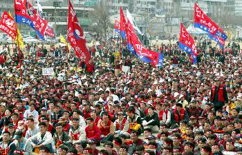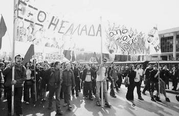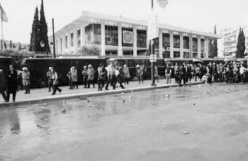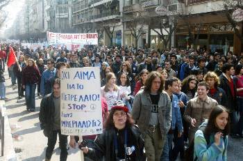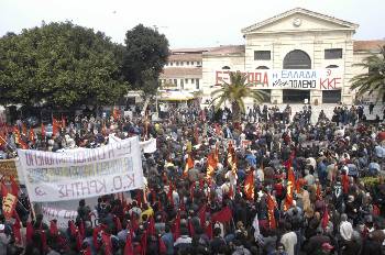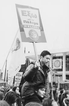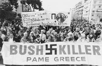 Η πρώτη μας υποχρέωση είναι, μαζί με την πάλη κατά του πολέμου ενάντια στο Ιράκ, να αποκαλύψουμε στο λαό το μεγάλο ψέμα της ελληνικής κυβέρνησης ότι δήθεν δε συμμετέχουμε στον πόλεμο. Η βάση της Σούδας πρέπει να κλείσει. Θα την κλείσουμε εμείς, ο λαός. Γι' αυτό και ο αγώνας για την ειρήνη πρέπει να συνδυαστεί με το γενικότερο πολιτικό αγώνα για βαθιές αλλαγές στην Ελλάδα, για αλλαγές που θα επιβάλουν οι λαοί σε κάθε χώρα. Δεν μπορεί αυτή τη στιγμή, Ελληνες φιλειρηνιστές, πατριώτες και δημοκράτες να βγαίνουν στους δρόμους, να απεργούν, να λένε "όχι" στον πόλεμο με το ένα χέρι, και με το άλλο χέρι να ανέχονται ΠΑΣΟΚ και ΝΔ να τηρούν τις λεγόμενες συμβατικές τους υποχρεώσεις. Πρέπει να τιμωρήσουμε και τα δυο αυτά κόμματα, πρέπει να σπάσουν τα μούτρα τους στην Ελλάδα, πρέπει να αλλάξουμε την κατάσταση, αλλιώς θα είμαστε μόνο θεωρητικοί φιλειρηνιστές κι όχι φιλειρηνιστές της πράξης. Ο πόλεμος σήμερα πρέπει να γίνει πόλεμος και στο εθνικό πεδίο, πόλεμος κατά του πολέμου, όπου κι αν εμφανίζεται, αγώνας σε κάθε χώρα. Μόνον τότε μπορούμε να υπηρετήσουμε την υπόθεση της ειρήνης, της κοινωνικής ευημερίας των λαών».