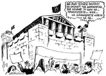Διαδραματίστηκε ολοζώντανη μπροστά στα μάτια των χιλιάδων διαδηλωτών, μέσα από το θεατρικό δρώμενο που παρουσιάστηκε στη χτεσινή εκδήλωση.