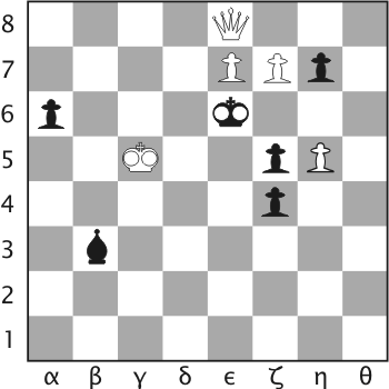 Στο Νο 555 παίζουμε 1. Ββ1 Αγ1 2. Αε3! Ρθ2 3. Βθ7 ματ. Αν 1...Αε1 2. Αζ2! Ρθ2 3. Βθ7+ ματ. Αν 1...Αθ6 2. Αε3+ Ρθ2 3. Βη1+ ματ! Στο Νο 556 έχουμε 1. Βε5! Ρη4 2. Βη3+ Ρθ5 3. Βθ3+ ματ. Αν 1...Ρθ5 2. Αζ3+ Ρη6 3. Βε6+ ματ.