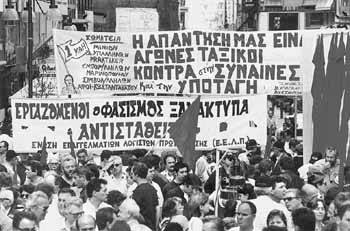 - Κατάργηση των συλλογικών συμβάσεων εργασίας. Τα πρώτα χτυπήματα έχουν δοθεί και στη χώρα μας. Αυτό που πριν μερικά χρόνια θα θεωρούνταν αδιανόητο, έγινε με το Ν.2639, σύμφωνα με τον οποίο οι κλαδικές συλλογικές συμβάσεις εργασίας δεν ισχύουν για «δράσεις» στα πλαίσια των Τοπικών Συμφώνων Απασχόλησης. Ετσι, ο εργαζόμενος που θα προσληφθεί - ήδη έχει προχωρήσει σε διάφορες περιοχές της χώρας το μέτρο - από επιχειρήσεις που στήθηκαν στα πλαίσια των ΤΣΑ, αμείβεται με το κατώτερο μεροκάματο, ανεξάρτητα από το χρόνο προϋπηρεσίας του και την ειδικότητά του! Νέες πιέσεις δέχεται το εισόδημα των εργαζομένων με τις κατευθύνσεις για τη δημοσιονομική πολιτική και τη συγκράτηση των αυξήσεων. Η εξαγγελία του «δεκαχίλιαρου» συνδέεται άμεσα με το αποτέλεσμα των διαπραγματεύσεων για την υπογραφή της νέας ΕΓΣΣΕ.
