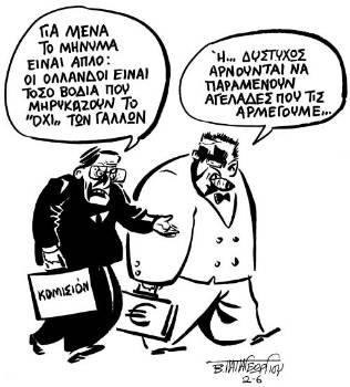 ΚΥΝΙΣΜΟΣ: «Είναι προφανές ότι οι συντεχνίες ζουν σε ένα δικό τους κόσμο και δεν καταλαβαίνουν πως από τη στιγμή που η κυβέρνηση θα θελήσει να αφαιρέσει για το μέλλον τα προνόμιά τους, πολύ δύσκολα θα πείσουν τους πολίτες για το δίκιο των επιχειρημάτων τους. Πολύ δύσκολα θα βρουν κοινωνικούς συμμάχους. Ειδικώς, όταν μάλιστα δε θίγονται ώριμα δικαιώματά τους και οι όποιες αλλαγές αφορούν τους νέους υπαλλήλους» (ο Μανώλης Κοττάκης στην «ΑΠΟΓΕΥΜΑΤΙΝΗ»).