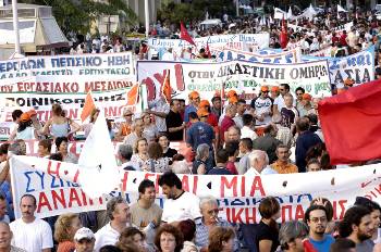 Από την πλευρά της η πλειοψηφία της ΓΣΕΕ έσπευσε να δηλώσει συμμετοχή στο τραπέζι του κοινωνικού διαλόγου αφού όπως είπε ο πρόεδρος της Συνομοσπονδίας για το Ασφαλιστικό, «πρέπει να κινηθούμε από τώρα». Για τους μισθούς, επανέλαβε τις γνωστές θέσεις της πλειοψηφίας και ζήτησε να συμφωνηθεί ένα χρονοδιάγραμμα σύγκλισης με το μέσο όρο των ευρωπαϊκών μισθών. Ταυτόχρονα περιόρισε τις διεκδικήσεις για την ακρίβεια στο ζήτημα του επιδόματος θέρμανσης (το καθόρισε στα 300 ευρώ) και μάλιστα μόνο γι' αυτούς που έχουν οικογενειακό εισόδημα κάτω από 11.000 ευρώ. Τέλος, μπροστά στη λαίλαπα των απολύσεων, αρκέστηκε ανέξοδα να ζητήσει να... δοθούν στη δημοσιότητα τα ονόματα με τις επιδοτήσεις των βιομηχάνων γιατί όπως είπε οι επιχειρήσεις έχουν κοινωνική ευθύνη.