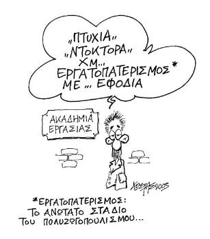 Ο ΡΟΛΟΣ ΤΟΥ ΕΡΓΑΤΟΠΑΤΕΡΑ ΜΕ ΠΤΥΧΙΟ: «Ο πρόεδρος του ΠΑΣΟΚ Γ. Παπανδρέου χαρακτήρισε "ιστορική" την απόφαση για τη δημιουργία της Ακαδημίας, καθώς η γνώση αποτελεί βάθρο της δημοκρατίας. Τόνισε ότι ο συνδικαλισμός καλείται να παλέψει για ένα διαφορετικό ρόλο, "να ανοίξει έναν εναλλακτικό δρόμο απέναντι στην πολιτική της νεοφιλελεύθερης ανάπτυξης. Πρέπει να κερδίσουμε το στοίχημα του εξανθρωπισμού της παγκοσμιοποίησης"» (το ρεπορτάζ στα «ΝΕΑ»).
