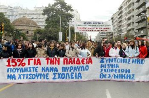 Επομένως, γονείς, μαθητές και εκπαιδευτικοί δεν μπορούν να τρέφουν ελπίδες οριστικής λύσης του προβλήματος με αυτά τα δεδομένα. Και ούτε να πείθονται από την άποψη της διοίκησης της Νομαρχιακής Αυτοδιοίκησης Θεσσαλονίκης (ΝΑΘ), ότι, δηλαδή, αιτία του προβλήματος της σχολικής στέγης στη Θεσσαλονίκη είναι η «κακιά» υπουργός, που δίνει πιο πολλά στον Οργανισμό Σχολικών Κτιρίων (ΟΣΚ) και πιο λίγα στη ΝΑΘ. Ούτε, βέβαια, να θεωρούν ότι με τις δηλώσεις, δήθεν, διεκδίκησης, του νομάρχη, θα λυθεί το πρόβλημα, αφού ο ίδιος ο νομάρχης δηλώνει πίστη και ελπίδα στην πολιτική της ΝΔ και του Κ. Καραμανλή, που καταστρέφει το δικαίωμα στη δημόσια και δωρεάν Παιδεία. Αλλωστε, το Πρόγραμμα Δημοσίων Επενδύσεων (ΠΔΕ) για το οποίο γίνεται λόγος, εντάσσεται, ουσιαστικά, στη στρατηγική του Γ` ΚΠΣ, δηλαδή στην κοινοτική ενίσχυση για έργα υποδομής που θα εξυπηρετήσουν την απελευθέρωση της αγοράς. Είναι, ουσιαστικά, όχημα προώθησης των καπιταλιστικών αναδιαρθρώσεων σε διάφορους τομείς (π.χ. εκπαίδευση), με στόχο τη λεγόμενη «σύγκλιση» των οικονομιών, ενώ ο ίδιος ο χαρακτήρας του είναι ασυμβίβαστος με εναλλακτική πρόταση φιλολαϊκής αξιοποίησης.