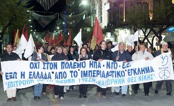 Από την πρόσφατη μεγάλη διαδήλωση, εύλογο το πλακάτ των διαδηλωτών, που διασυνδέει τον φασίστα εγκληματία Καρίλες με τον Μπους