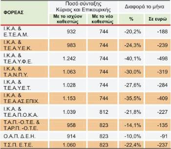 Ο «Ρ» παρουσιάζει σήμερα συγκεντρωτικά στοιχεία που επεξεργάστηκαν οι εργαζόμενοι στους ασφαλιστικούς Οργανισμούς και τα οποία αποτυπώνουν τις συνέπειες των ανατροπών που επέρχονται με το νέο νομοσχέδιο για την Κοινωνική Ασφάλιση σε σύγκριση με το ισχύον νομοθετικό καθεστώς (η ψήφιση του νομοσχεδίου ολοκληρώνεται αύριο στη Βουλή). Οι συνέπειες είναι ακόμα μεγαλύτερες αν συνδυαστούν με την εφαρμογή του νόμου Ρέππα με τον οποίο, σε ό,τι αφορά στο ύψος των συντάξεων, από την 1/1/2008 επέρχονται μειώσεις στις συντάξεις των πρώην ΔΕΚΟ, στις τράπεζες αλλά και στο δημόσιο.