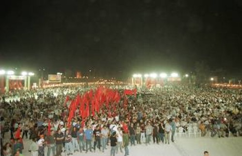 Σας καλωσορίζουμε, ξεκίνησε την ομιλία του ο Ν. Σοφιανός, στις κεντρικές εκδηλώσεις του Φεστιβάλ της Κομμουνιστικής Νεολαίας, του μοναδικού νεανικού, πολιτικού - πολιτιστικού θεσμού, που για 26 χρόνια αποτελεί ανάσα συλλογικότητας και δημιουργίας. Ενα μεγάλο βήμα έκφρασης των διαθέσεων χιλιάδων νέων, για μια ζωντανή συνάντηση με την ΚΝΕ, με την πολιτική και ιδεολογία του ΚΚΕ.