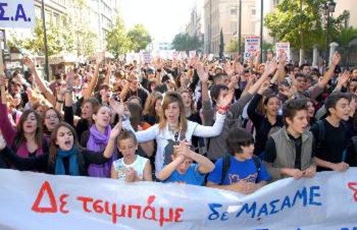 Τη συμμετοχή τους στα συλλαλητήρια στις 21 Οκτώβρη συζητούν σε όλη τη χώρα οι μαθητές, οι οποίοι οργανώνουν πολύμορφα τον αγώνα τους. Πραγματοποιούν γενικές συνελεύσεις και συζητούν πολύμορφες κινητοποιήσεις στους δήμους, στις γειτονιές, στα σχολεία. Ηδη, 20 σχολεία στην Αθήνα, με αποφάσεις των 15μελών τους ανταποκρίθηκαν στο κάλεσμα του Συντονιστικού Αγώνα για συμμετοχή στην πανεργατική κινητοποίηση στις 21 Οκτώβρη, με συγκέντρωση στην Ομόνοια, στις 10 το πρωί.