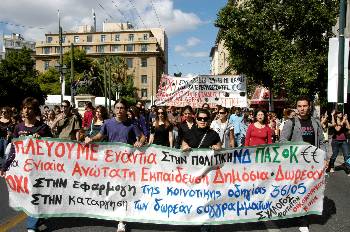 Ολη αυτή η σκόπιμα θολή και συναινετική συμμαχία, ΠΑΣΟΚ - ΣΥΝ, βρήκε την έκφρασή της και μπροστά στα συλλαλητήρια στις 6 Νοέμβρη. Ετσι, ενώ την ημερομηνία αυτή είχαν ορίσει πρώτοι οι μαθητές για κινητοποιήσεις σε όλη τη χώρα, ενώ τα Συντονιστικά των μαθητών και στη συνέχεια η ΠΚΣ στους φοιτητές όρισαν συγκεντρώσεις και κάλεσαν στην Ομόνοια το πρωί της ερχόμενης Πέμπτης, οι ΠΑΣΟΚοι της ΟΛΜΕ και οι ΣΥΝασπισμένοι της ΠΟΣΔΕΠ καλούν τους καθηγητές να διαδηλώσουν το μεσημέρι στα Προπύλαια, κόντρα και μακριά από τους φοιτητές και τους μαθητές τους. Την περασμένη Τετάρτη στην ΟΛΜΕ οι ΠΑΣΟΚοι έλεγαν πάμε στα Προπύλαια γιατί εκεί καλεί η ΠΟΣΔΕΠ, ενώ η ΠΟΣΔΕΠ δεν είχε ορίσει συγκέντρωση. Και αφού έβγαλε η ΟΛΜΕ κάλεσμα για τα Προπύλαια (έχοντας πρώτα εξαπολύσει επίθεση προς τους μαθητές ότι είναι υποκινούμενοι, δηλαδή ταυτόσημη επίθεση με αυτή της κυβέρνησης), την επόμενη μέρα έβγαλε και η παράταξη του ΣΥΝ στην ΠΟΣΔΕΠ ίδιο κάλεσμα... επειδή εκεί καλούσε η ΟΛΜΕ. Να πώς στήνεται η «ομπρέλα» μέσα σε γραφεία και μακριά από το πραγματικό κίνημα!