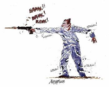 «Εμένα και ο θάνατος/ μου φαίνεται γιορτή/ ένα λαχείο είναι η ζωή/ ας είναι κι αμορτί/ λουλούδια για το χάροντα/ μπουζούκι και κιθάρα/ κι ένα ανοιχτό περίπτερο/ να πάρουμε τσιγάρα...».