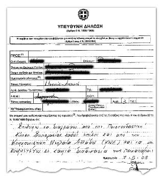 Αξιώνει από σπουδαστές, στη ΣΕΥΠ του ΤΕΙ Αθήνας, να υπογράφουν υπεύθυνη δήλωση ότι δεν έχουν σχέση με την ΠΚΣ και την ΚΝΕ