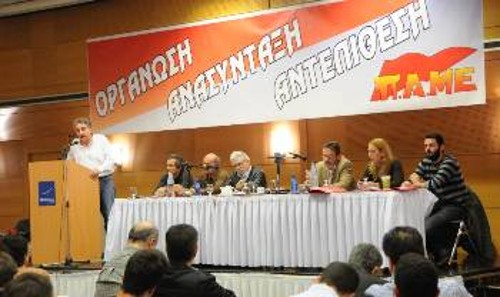 «Οι αλλαγές και οι συνέπειες που έφεραν οι καπιταλιστικές αναδιαρθρώσεις και ειδικά στις εργασιακές σχέσεις προκάλεσαν νέες δυσκολίες στο συνδικαλιστικό κίνημα και τους αγώνες της εργατικής τάξης, όξυναν ακόμα περισσότερο την αναντιστοιχία της δομής του συνδικαλιστικού κινήματος σε σχέση με τη νέα παραγωγική βάση που αναπτύσσεται», τόνισε το στέλεχος του ΠΑΜΕ. «Το ΠΑΜΕ πρέπει να αντιστοιχηθεί σε αυτές τις εξελίξεις. Η οργάνωση της πάλης ιδιαίτερα σε συνθήκες όξυνσης της επίθεσης στη ζωή της εργατικής τάξης απαιτεί μεγαλύτερη ευθύνη, ικανότητα και φροντίδα. Να ανέβει η πολιτικο-ιδεολογική παρέμβαση. Ιδιαίτερα εκεί που οι δυνάμεις του ΠΑΜΕ είναι μειοψηφία, να αντιμετωπίζουμε τα εμπόδια που βάζει ο κυβερνητικός και εργοδοτικός συνδικαλισμός, διάφορα επιχειρήματα κλπ. Το κύριο ζήτημα την περίοδο αυτή είναι να βρισκόμαστε μπροστά στην οργάνωση της πάλης, βασικά στους χώρους εργασίας. Να μην υποβαθμίζουμε κανένα πρόβλημα. Να μην αφήνουμε έδαφος κενό για να το καλύπτουν οι άλλες δυνάμεις. Να υπάρχει πλήρης ετοιμότητα, γιατί υπάρχει πιθανότητα λόγω της απότομης όξυνσης των προβλημάτων, να ξεσπάνε κινητοποιήσεις. Τα όποια προβλήματα πρέπει να γίνονται υπόθεση όλου του κλάδου, ευρύτερα όλων των εργαζομένων».