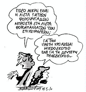 Τις προάλλες, και προκειμένου να τσιγκλίσουν την κοινή γνώμη, έδωσαν στη δημοσιότητα λίστες με ονόματα μεγαλογιατρών - φοροφυγάδων. Τώρα επιχειρούν να βάλουν στο ίδιο καλούπι και μισθωτούς του δημόσιου τομέα, επειδή, λέει, ανακάλυψαν πως κάπου 80 χιλιάδες είχαν δηλώσει το 2008 μέχρι ...500 ευρώ λιγότερο εισόδημα. Και συνολικά, βρήκαν, λέει, ότι περίπου 150.000 φορολογούμενοι μισθωτοί δε δήλωσαν 205 εκ. ευρώ. Μιλάμε για ψίχουλα μέσα στον ωκεανό των φοροελαφρύνσεων του κεφαλαίου, δεκάδων δισεκατομμυρίων, ωστόσο οι κυβερνώντες θεωρούν ότι «μετράει» στην άθλια προσπάθεια που κάνουν να πείσουν ότι, πάνω - κάτω, «όλοι φταίμε». Πρόκειται για τον απόλυτο εμπαιγμό, την απόλυτη πρόκληση.