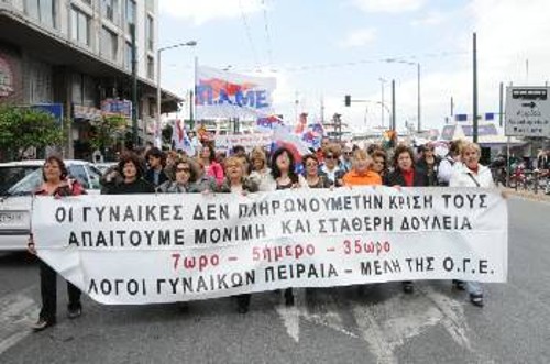 Αυτό είναι το μέλλον που προετοιμάζουν για τις νέες γυναίκες, αυτές τις συνθήκες δουλειάς και ζωής θέλουν να τους επιβάλουν το κεφάλαιο και τα κόμματά του. Συνθήκες στερημένες και από τα πιο στοιχειώδη συλλογικά δικαιώματα, χωρίς ίχνος από τις κατακτήσεις που κατάφεραν να αποσπάσουν οι αγώνες των εργαζομένων τον περασμένο αιώνα. Χρησιμοποιούν το δημόσιο χρέος και τα ελλείμματα για να τρομοκρατήσουν, για να πείσουν τις γυναίκες πως πρέπει να κάνουν υποχωρήσεις από τα δικαιώματά τους, πως πρέπει να υποταχθούν σε αυτήν την πολιτική, να την αναγνωρίσουν ως μονόδρομο για το μέλλον το δικό τους και των παιδιών τους.