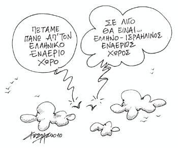 «Οι σχέσεις Ελλάδας - Ισραήλ δεν είναι ανταγωνιστικές σχέσεις με άλλες διμερείς ή και πολυμερείς συνεργασίες που έχει η χώρα μας. Η σχέση Ελλάδας - Τουρκίας και η σχέση Ισραήλ - Τουρκίας δεν θεωρούμε ότι είναι ανταγωνιστική των σχέσεων που αναπτύσσουμε εμείς, η Ελλάδα και το Ισραήλ (...) Διαχρονικά έχουμε προβλήματα με την Τουρκία (...) αλλά η διάθεση που υπάρχει είναι να έχουμε καλές γειτονικές σχέσεις, βασισμένες σε κοινές αρχές, στο σεβασμό, ιδιαίτερα, του διεθνούς δικαίου». Αυτά έλεγε προχτές ο Γ. Παπανδρέου στην κοινή συνέντευξη Τύπου με τον Μπ. Νετανιάχου. Ο Ελληνας πρωθυπουργός προκαλεί τον κοινό νου προσπαθώντας να αποσυνδέσει μεταξύ τους τις σχέσεις Ελλάδας - Τουρκίας - Ισραήλ, παραγράφοντας στα λόγια τους ισχυρούς ανταγωνισμούς στην περιοχή και παρουσιάζοντας μια μαγική εικόνα της εύφλεκτης γειτονιάς μας. Η πραγματικότητα είναι πολύ διαφορετική.