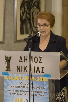 Παρεμβαίνοντας στη συζήτηση, η Αλέκα Παπαρήγα επισήμανε την αναγκαιότητα «σήμερα το εργατικό λαϊκό κίνημα να δώσει τη μάχη σε συνθήκες πολέμου», να «εντάσσονται στην πάλη και νέες δυνάμεις», να «ανεβαίνουν οι μορφές πάλης» για να αντιμετωπιστεί η αντιλαϊκή πολιτική.