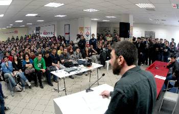- Στις 6.45 μ.μ., στο νυχτερινό λύκειο Αγίων Αναργύρων, με επικεφαλής τον Γιάννη Πρωτούλη, μέλος της ΚΕ.