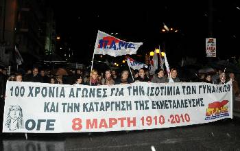 Τόσο η πρόεδρος της ΟΓΕ, Καλλιόπη Μπουντούρογλου, όσο και η Γιώτα Μαλλή, μέλος της διοίκησης του σωματείου των εργαζομένων στο «Ελενα», κάλεσαν τις γυναίκες σε συντεταγμένη αντίδραση στον πόλεμο που δέχονται τα δικαιώματα και οι κατακτήσεις τους, σε οργανωμένη πάλη με το ΠΑΜΕ, την ΟΓΕ, την κοινωνική συμμαχία εργαζομένων, αυτοαπασχολούμενων, φτωχών αγροτών, νεολαίας και γυναικών για να αλλάξει η τάξη στην εξουσία και να γίνει ο πλούτος που παράγουν οι εργαζόμενοι κοινωνική ιδιοκτησία.