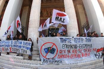 Από το συμβολικό αποκλεισμό των ταμείων στο Τζάνειο που πραγματοποίησαν το ΠΑΜΕ και σύλλογοι της ΟΓΕ |